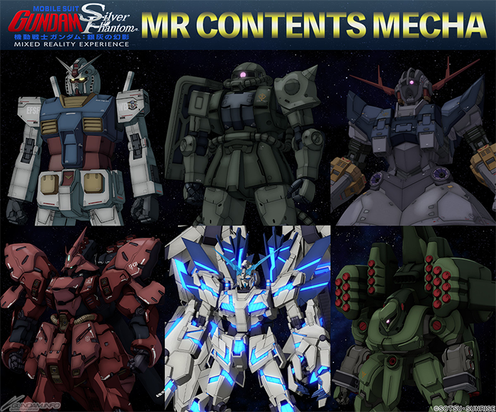 โมบิลสูท 6 แบบ รวมถึง Sazabi และ Unicorn Gundam Perfectibility จะพร้อมให้ใช้งานเฉพาะในระบบ MR Content นี้เท่านั้น