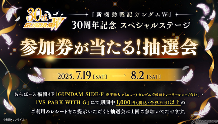 กิจกรรมฉลองครบรอบ 30 ปี Gundam W Operation Fukuoka มีกำหนดจัดขึ้นที่ LaLaport Fukuoka ในวันเสาร์ที่ 9 สิงหาคม