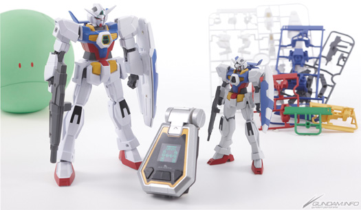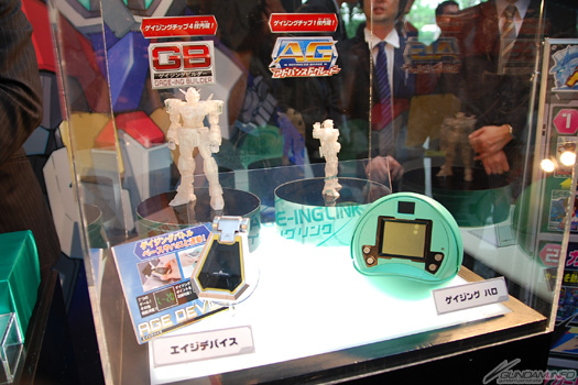 The new Gunpla grade AG (Advanced Grade) and the new Gundam figure line BG (Gage-ing Builder) carry 'Gage-ing Chip' circuitry which, when scanned by the Gage-ing Link system, allow models and figures alike to compete on the same field. Using devices like the free-play Gage-ing Battle Base kiosk, planned for installation at hobby shops, there will be more and more ways to play.