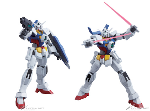 A 1/100 (19cm) painted, assembled figure. The figure has 15 points of articulation, and includes four Gage-ing Chips mounted in locations like the shoulders and torso, allowing play of a battle simulation game when scanned by the hobby shop Gage-ing Battle Base kiosk or Gage-ing Haro (sold separately)., just like the AG model line. Replicating the Gundam AGE's arm/leg swap system, enhancement parts called 'G-Ware' (sold separately, priced from 1,260 yen, available beginning October) and arms and legs from future GB figures can be attached to recreate onscreen combinations or create your own original MS!
