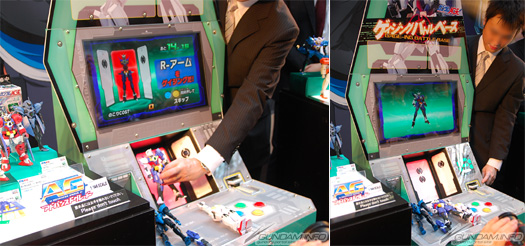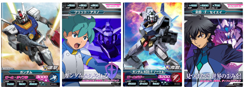 A card game using a flat-panel reader. By placing MS and pilot cards on the reader, they appear on the monitor. The player then moves the cards to direct their attacks. Set 1, scheduled for early October, focuses on Mobile Suit Gundam AGE. Cabinets will be available at toy stores, major retailers, and arcades.