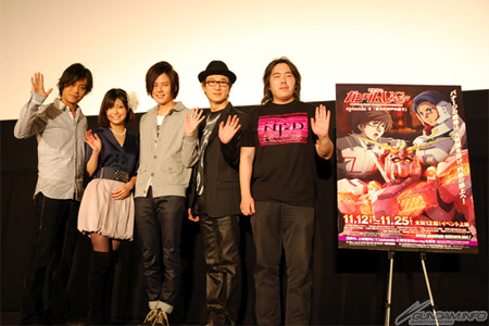 Invited were Koki Uchiyama (voice of Banagher Links), Daisuke Namikawa (voice of Riddhe Marcenas), Ken Narita (voice of Bright Noa), and Mariya Ise (voice of Loni Garvey). Also on hand was writer Harutoshi Fukui.