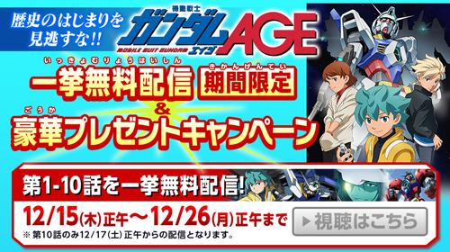 Stream Mobile Suit Gundam AGE episodes 1-10 free and get special gifts!