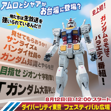 Gundam Summerfest, the first of Bandai Namco Live TV's three summer specials, will be broadcast live from the 1/1 Gundam statue in Odaiba's 'Diver City Tokyo Plaza' beginning at noon on August 12th.