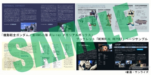 This 44-page booklet includes designers' rough drafts of characters and mecha, their process to becoming the final versions, comments from 08th MS Team staff and cast, and rare production materials.