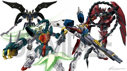 There are also two inner jackets by Gundam Wing mechanical animation director Masanori Shino: The Gundam Deathscythe H, Altron Gundam, Wing Gundam Zero, and Gundam Epyon on one, and the Tallgeese III, Virgo, Vayeate, Noin's Taurus, and the Mercurius on the other.