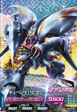 Finland-based Team Nemesis's top ace, Aila Jyrkiäinen, decorates the cover along with her Qubeley Papillon. The first press also includes a bonus decorative jumbo-sized "Qubeley Papillon" TryAge card.