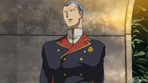 ダイクンの死後、ザビ家陰謀説を唱えるダイクンの側近ジンバ・ラル。