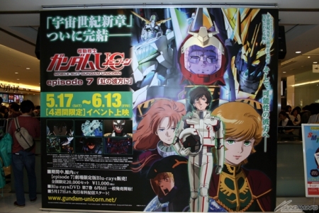 ▲多くの来場者が詰め掛ける3階メインロビーでは全てのポスターが「ガンダムUC」一色に!