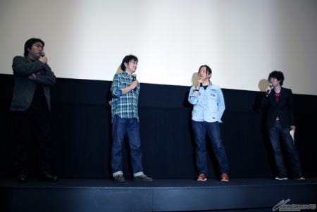 館内最速となるスクリーン1での上映の前には、古橋一浩監督、ストーリー担当の福井晴敏氏、脚本を務めるむとうやすゆき氏、小形尚弘プロデューサーをゲストに迎えた舞台挨拶が行われた。
