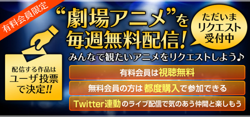 アニメ・特撮動画配信サービス「バンダイチャンネル」では、ユーザー投票で上位を獲得した劇場アニメ作品が、8月15日(金)より毎週1作品ずつライブ配信されることが決定した。