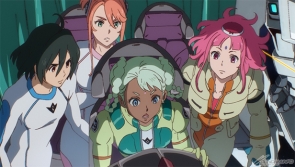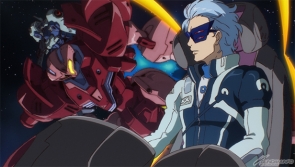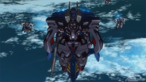 In episode 25, "Crossing the Line of Death", new mobile suits clash during reentry!